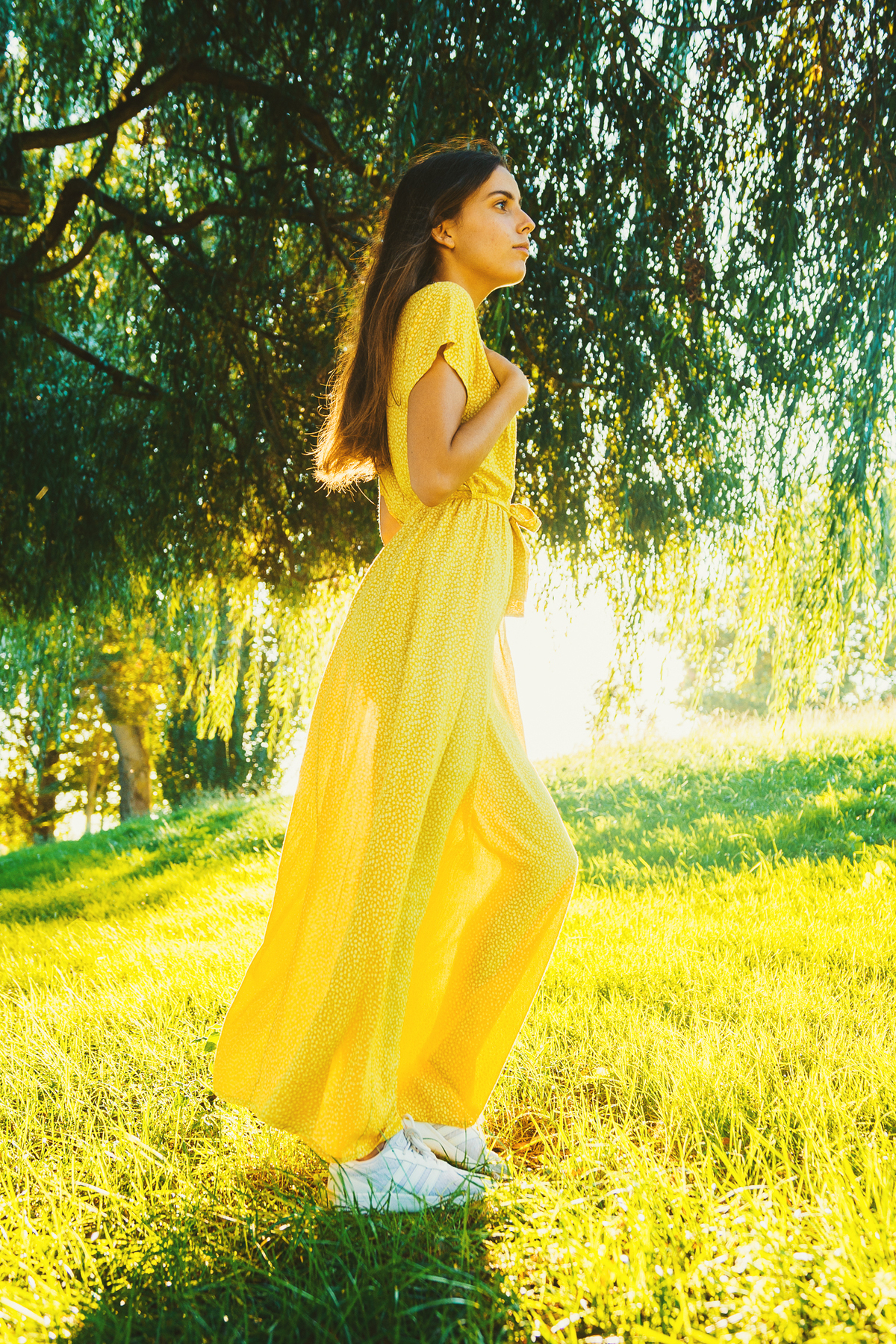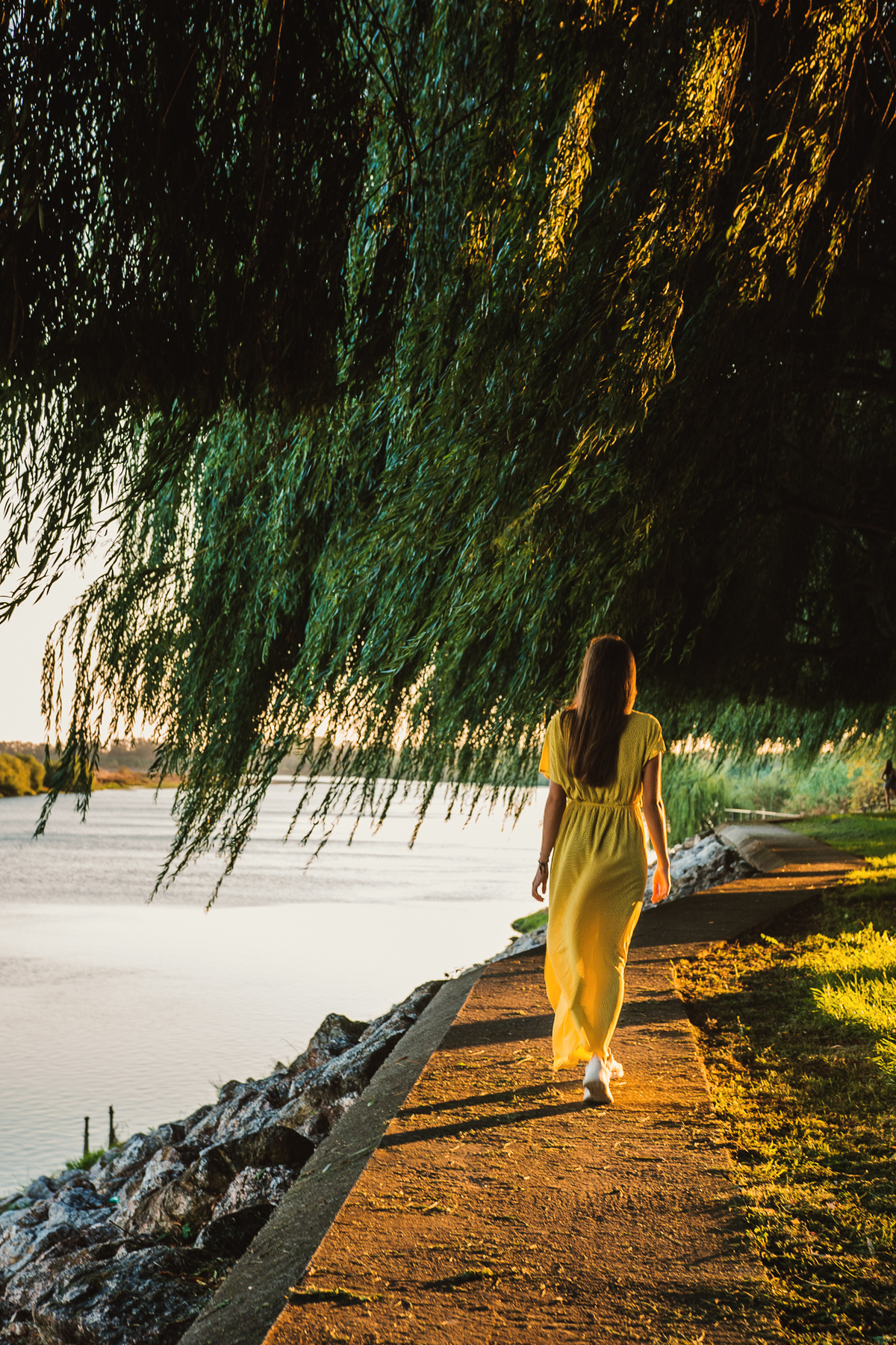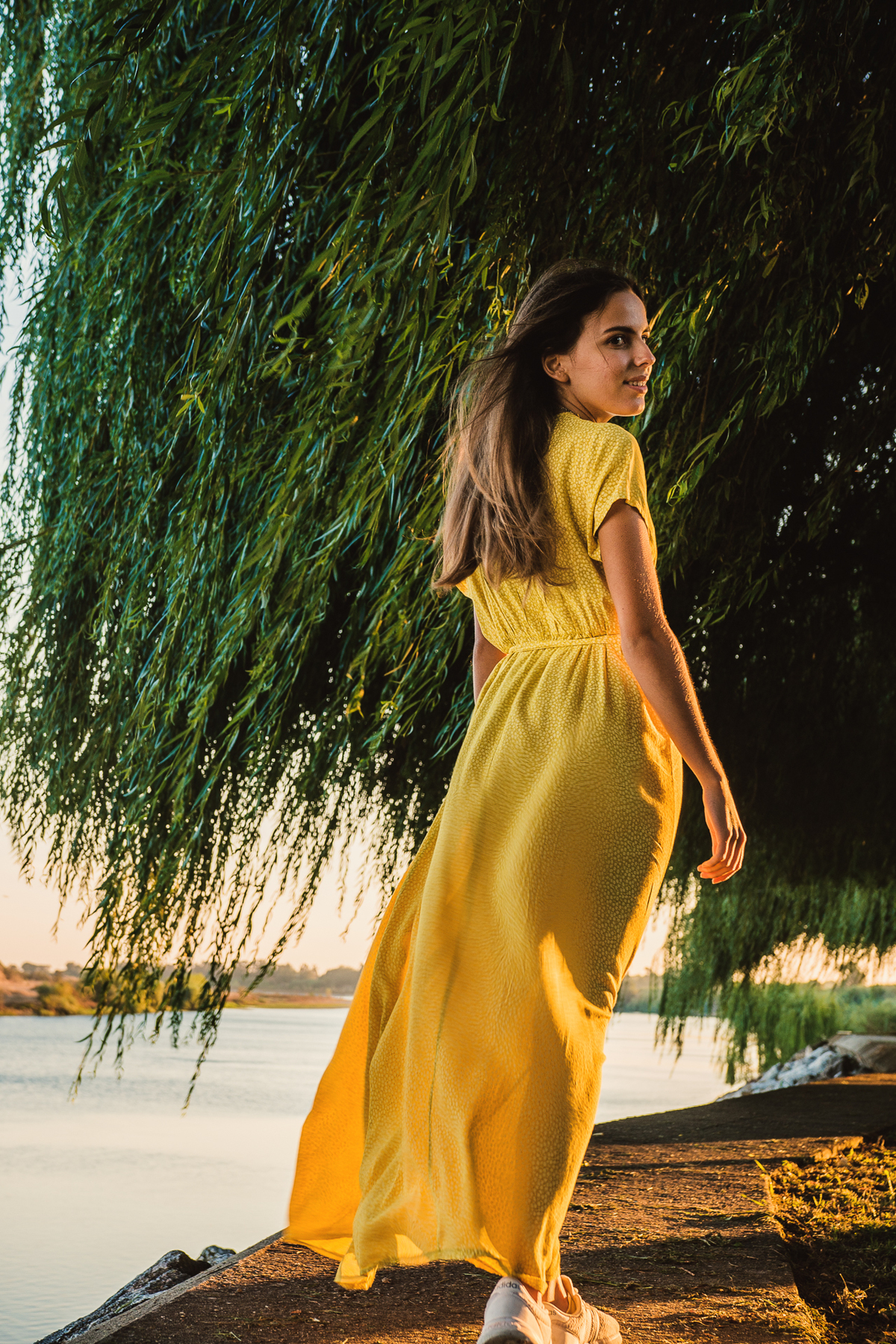 sessão individual torres novas retrato sessão fotográfica sessão de fotos ensaio barquinha parque vila nova da barquinha Maria Rita música violonista violão vestido amarelo luz natural golden hour ao ar livre lago natureza book artístico fotografia musical retrato feminino santarém duo capuano