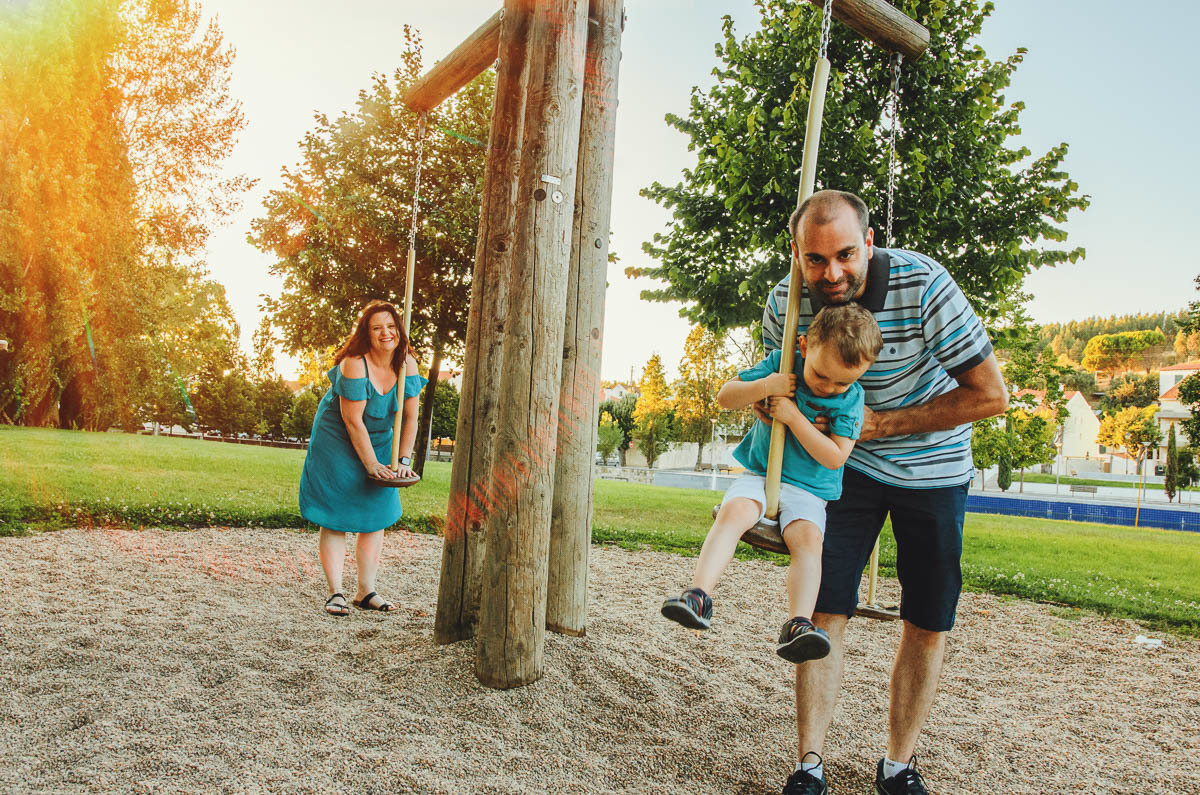 Sessão de família em Vila Nova da Barquinha realizada no encantador Barquinha Parque. Uma produção fotográfica focada em capturar momentos genuínos de amor e cumplicidade entre Aurelie, Rafael e Leandro. Utilização de luz natural durante o golden hour, técnicas de composição que valorizam a interação familiar e ambiente natural. Este ensaio retrata a essência dos retratos familiares modernos em Portugal, com autenticidade poética e profissionalismo técnico. Crédito: Duo Capuano